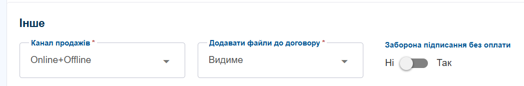 | Видиме | Поле буде доступне при оформленні договору та буде відображатися в договорі |