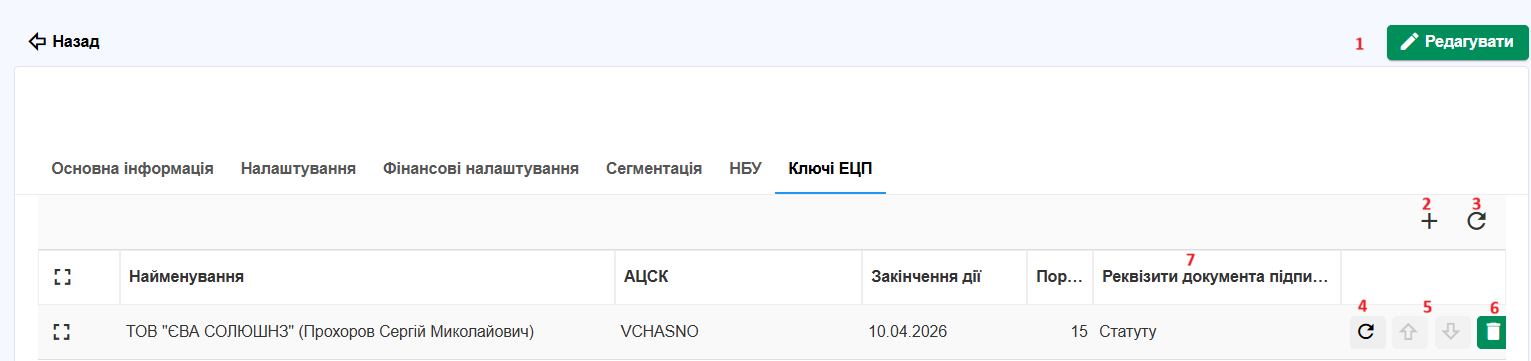 6 - кнопка видалення ЕЦП