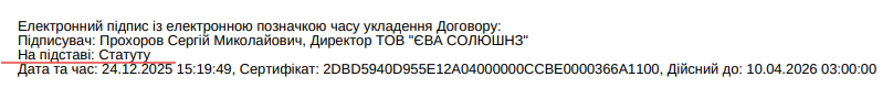 - найменування - назва СК та ПІБ особи-підписанта (в дужках)
